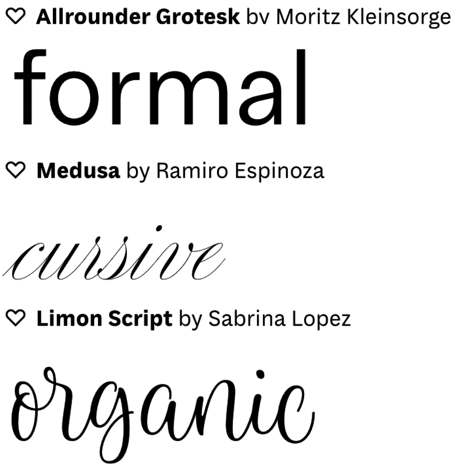 The way letters are formed varies. Formal is a rational way of drawing letters individually; cursive connects them; organic is freeform. Read more.